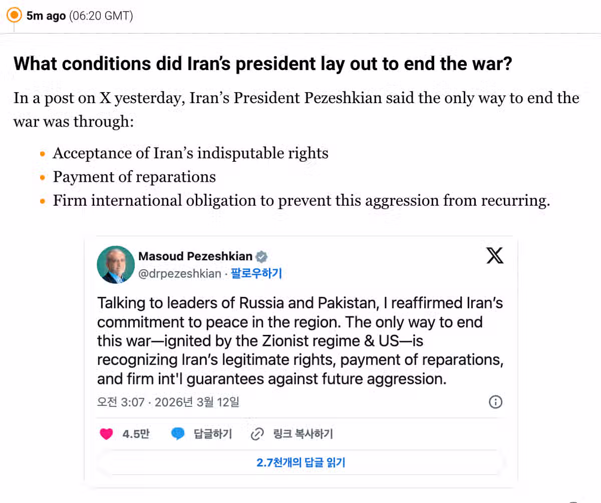 이란의 전쟁 종식 3대 조건