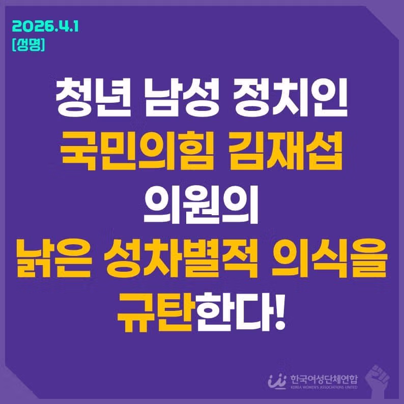 한국여성단체연합 국민의힘 김재섭 의원 규탄 성명