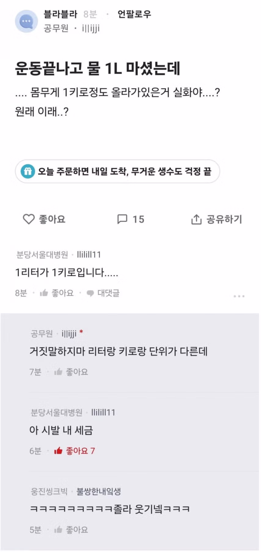 ???: 운동 끝나고 물 1L 마셨는데 어째서...