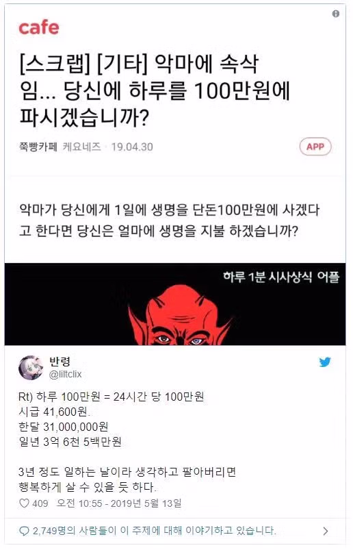 악마에게 하루 100만원에 판 후기jpg