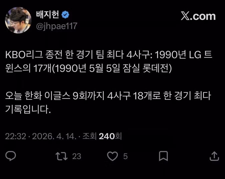 [야구] 금일 KBO 신기록.x
