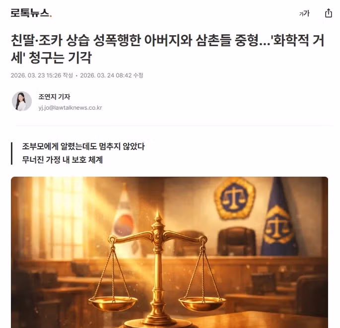 친딸·조카 상습 성폭행한 아버지와 삼촌들 중형 '화학적 거세' 청구는 기각