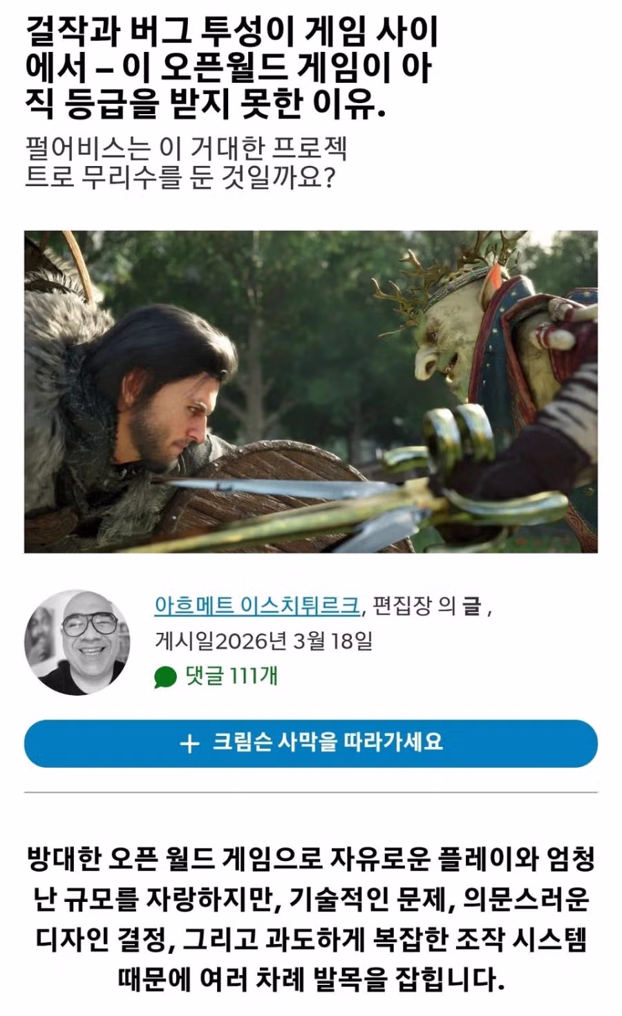 “평가 보류하겠다던” 붉은사막 리뷰 근황.jpg