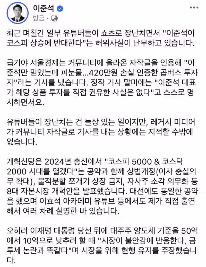 허위사실유포자 고소한다는 이준석