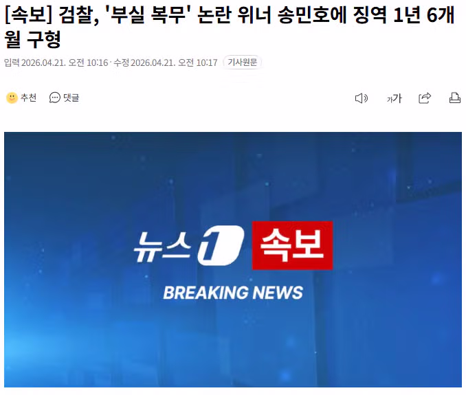 [속보] 검찰, '부실 복무' 논란 위너 송민호에 징역 1년 6개월 구형