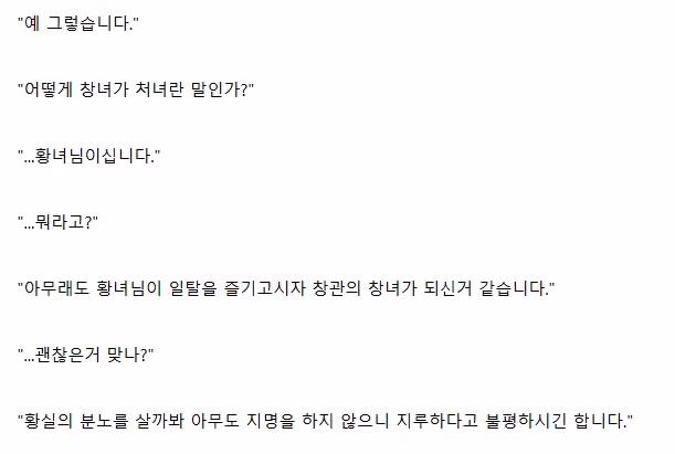"이보게. 저 창녀가 처녀라는게 사실인가?"