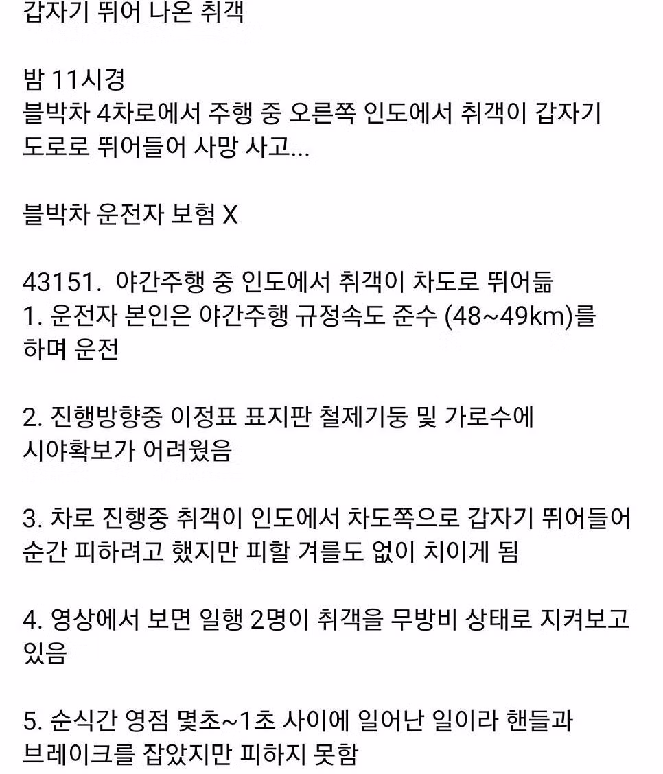 이 경우 사망에 대한 합의를 운전자가 봐야하는지 궁금함