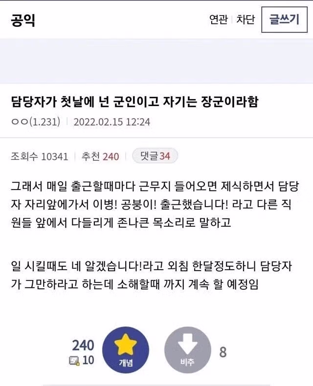 공익이 근무지에서 장군 밑에서 일한 썰