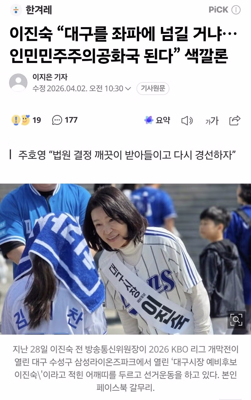 이진숙 “대구를 좌파에 넘길 거냐…인민민주주의공화국 된다” 색깔론