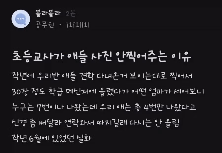 초등 교사가 애들 사진 안 찍어주는 이유