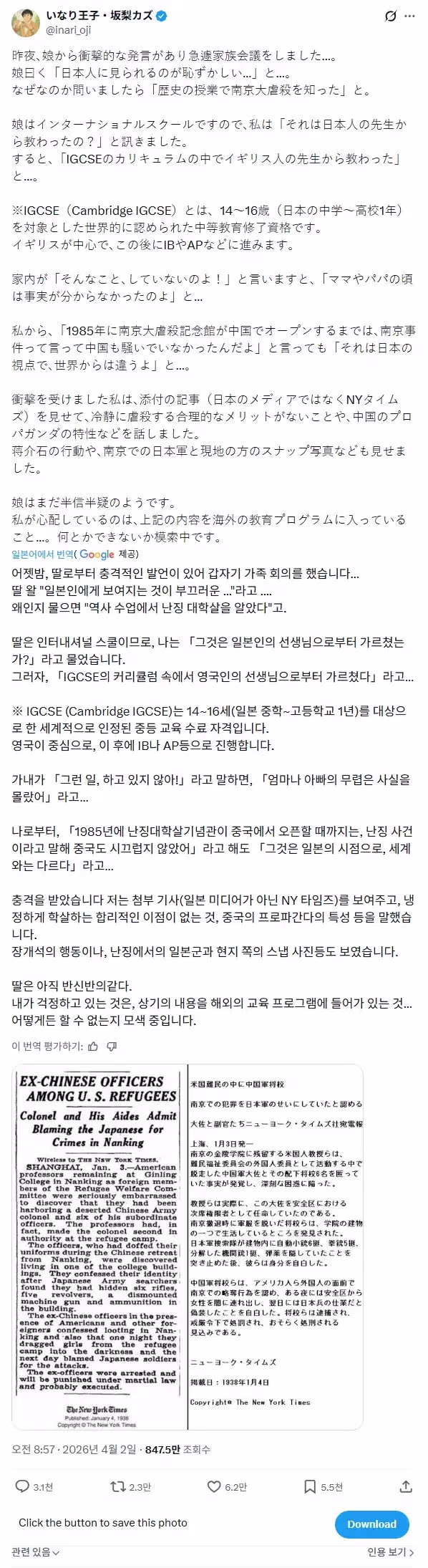 ???: 딸이 난징대학살을 알아서 걱정됩니다.