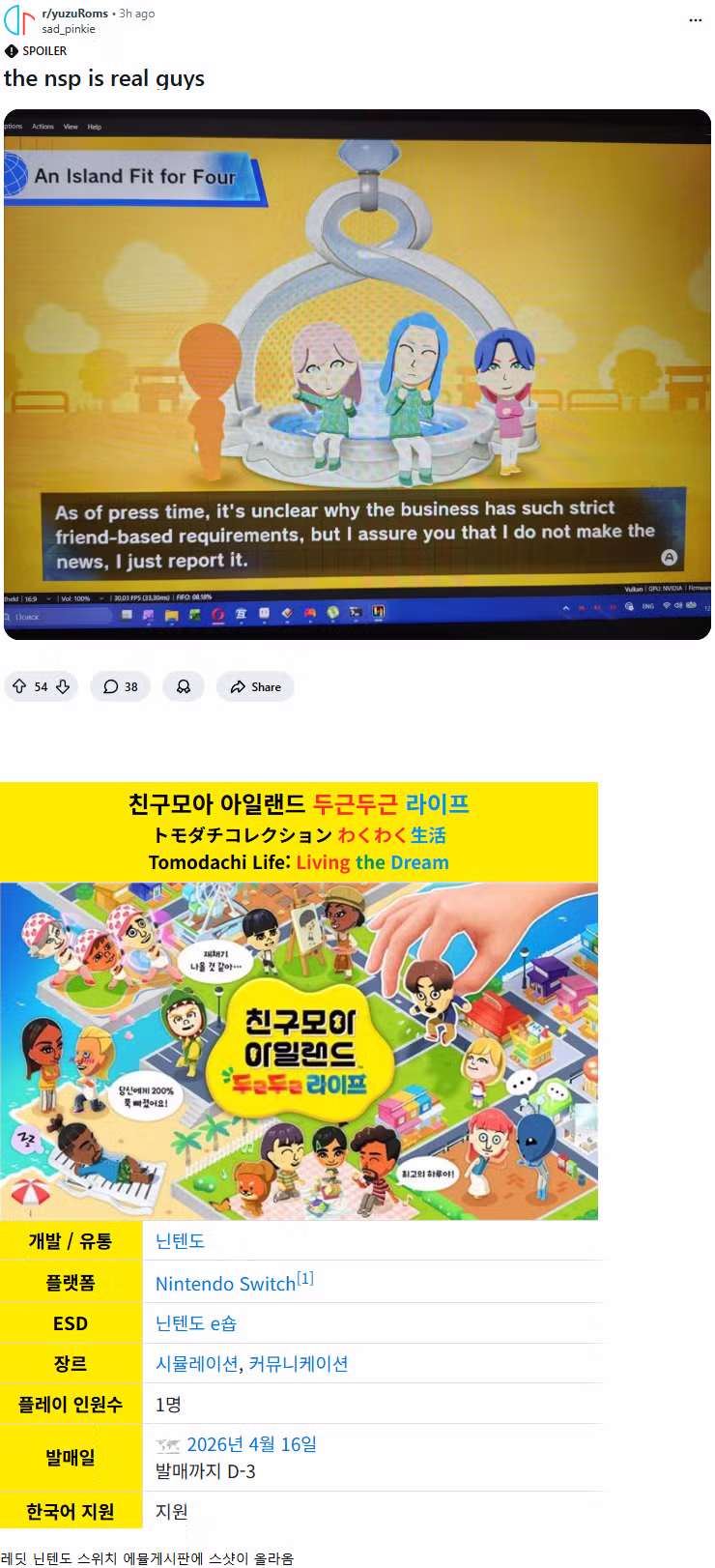 닌텐도 스위치 독점작 '친구모아 아일랜드 두근두근 라이프' 유출