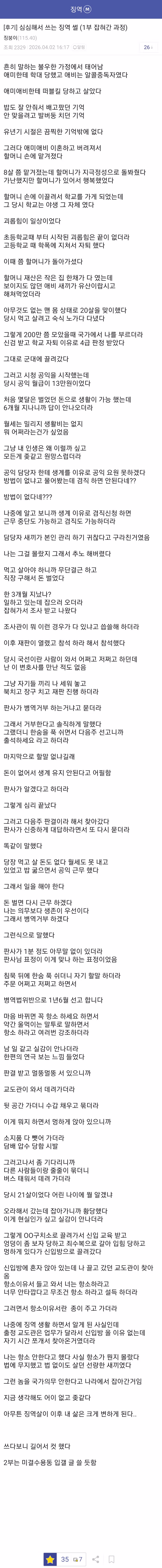 병역법 위반으로 징역을 갔다왔다는 징역 갤러