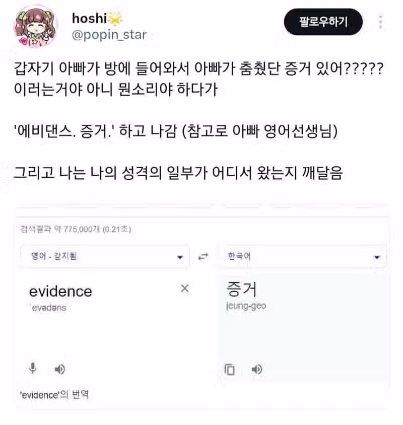 아빠가 갑자기 방에 들어와서 하는 말이 내가 춤췄단 증거 있어 ?????? 이러는
