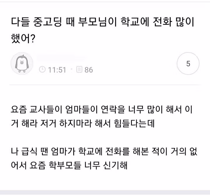 다들 중고딩 때 부모님이 학교에 전화 많이 했어?jpg