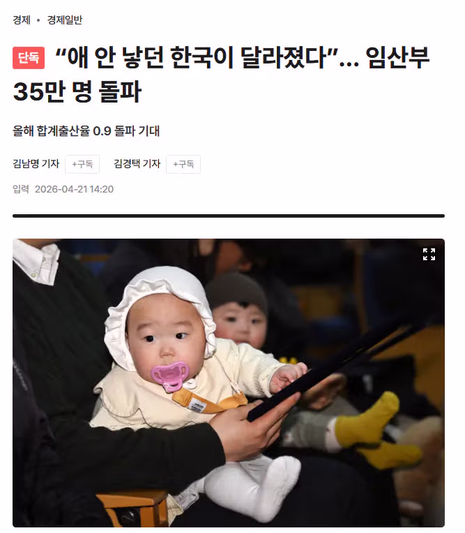 '애 안 낳던 한국이 달라졌다'… 임산부 35만 명 돌파.