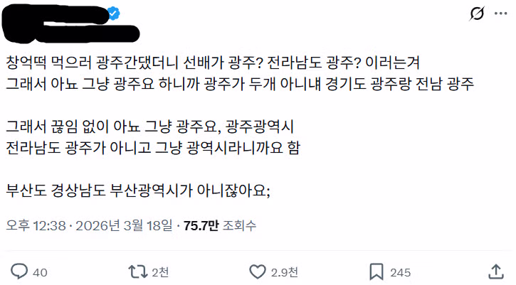 X에서 논쟁중인 '전라도 광주'는 지역비하다 vs 아니다