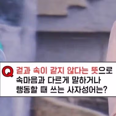 겉과 속이 같지 않다는 뜻으로 속마음과 다르게 말하거나 행동할 때 쓰는 사자성어는?