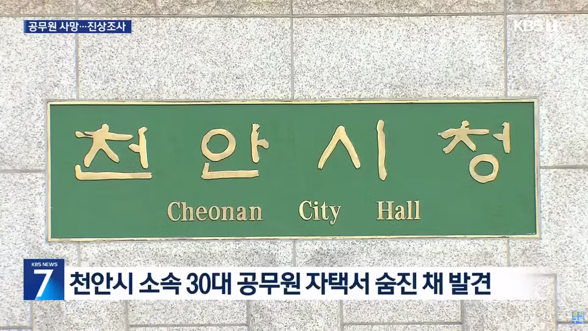 천안시 소속 30대 공무원 자택서 숨진 채 발견