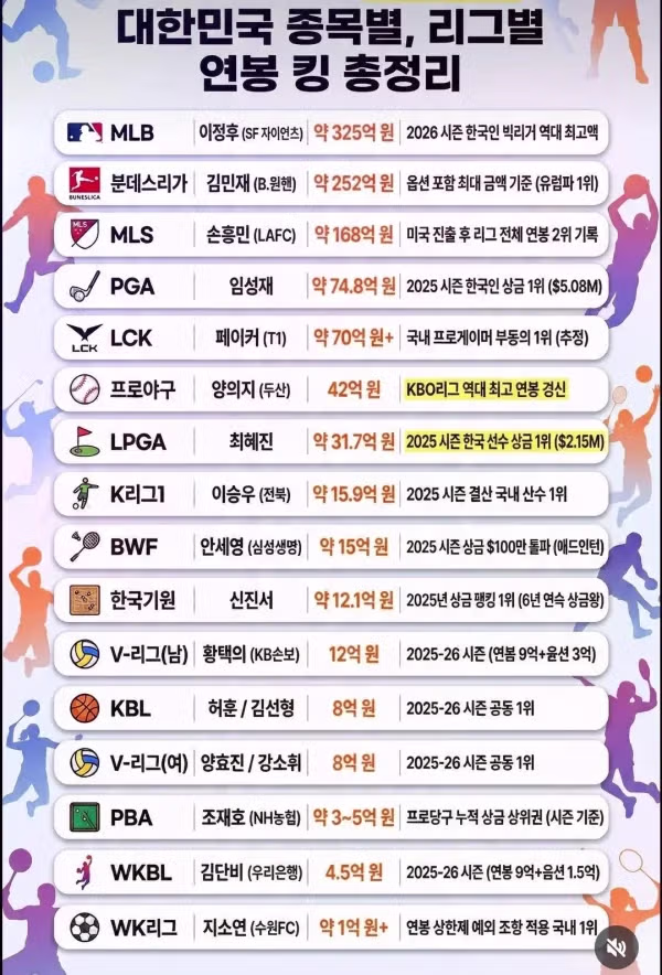 월드랭킹에 비해서는 안세영, 신진서 선수가 연봉이 낮군요.