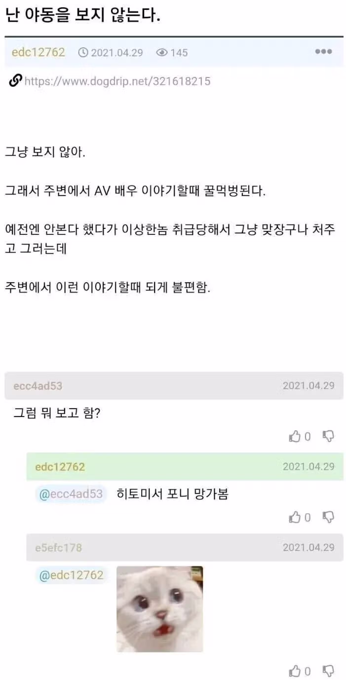 야동 안본다는 말 읻을 수 있다 vs 없다