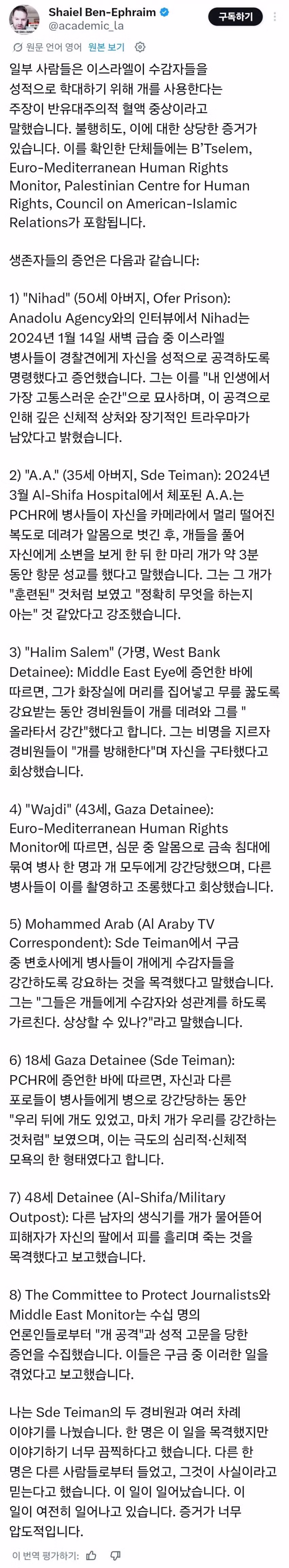 이게 진짜라면 심각한 문제인데? 특히 이스라엘은 유대교잖아? 기독교의 동성애 혐오나 증오는 거진 구약에서 온거임. 구약 위주인 유대교에서 저러는거면 얘네들 진짜 갈데까지 갔네ㅋㅋㅋ