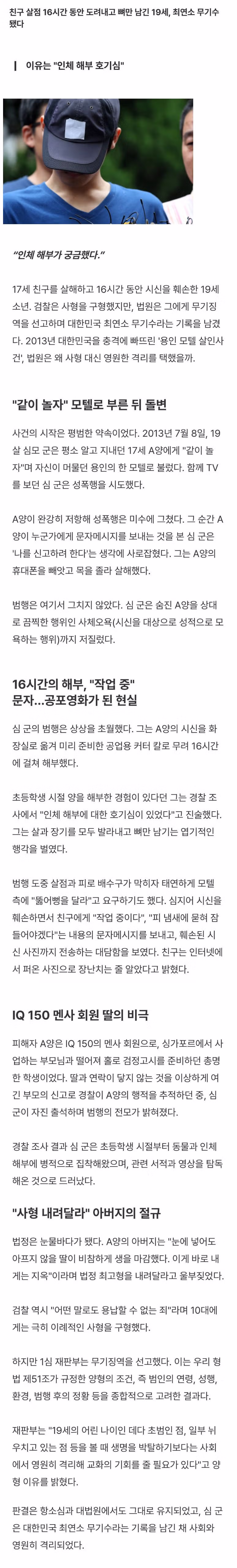 친구 살점 16시간 동안 도려내고 뼈만 남긴 19세, 최연소 무기수 됐다