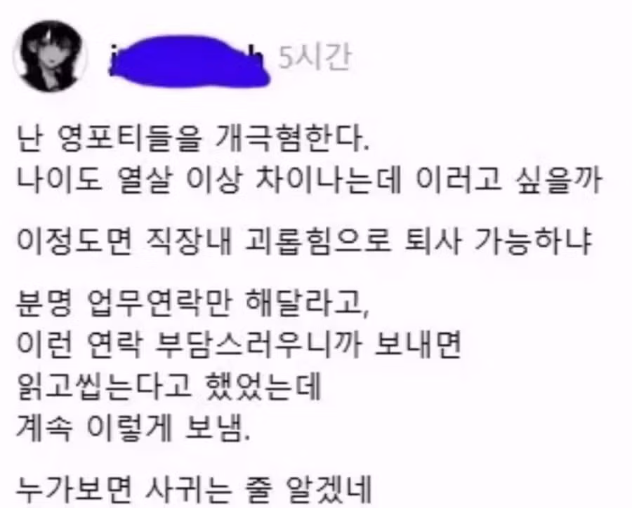 나이 10살이상 차이나는 직원한테 문자보낸 영포티