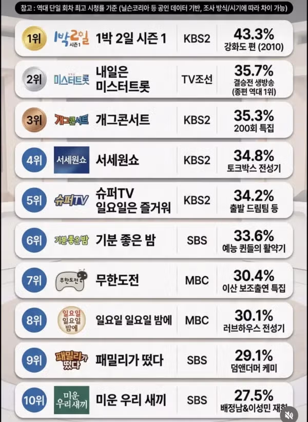 역대 대한민국 예능프로 시청률 순위.jpg