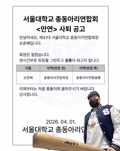 서울대학교 총동아리연합회장 사퇴