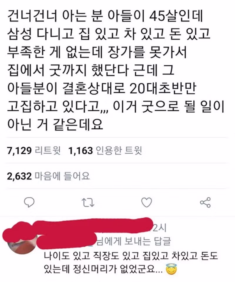 아들이 장가를 못가서 무당을 불러 굿한 썰