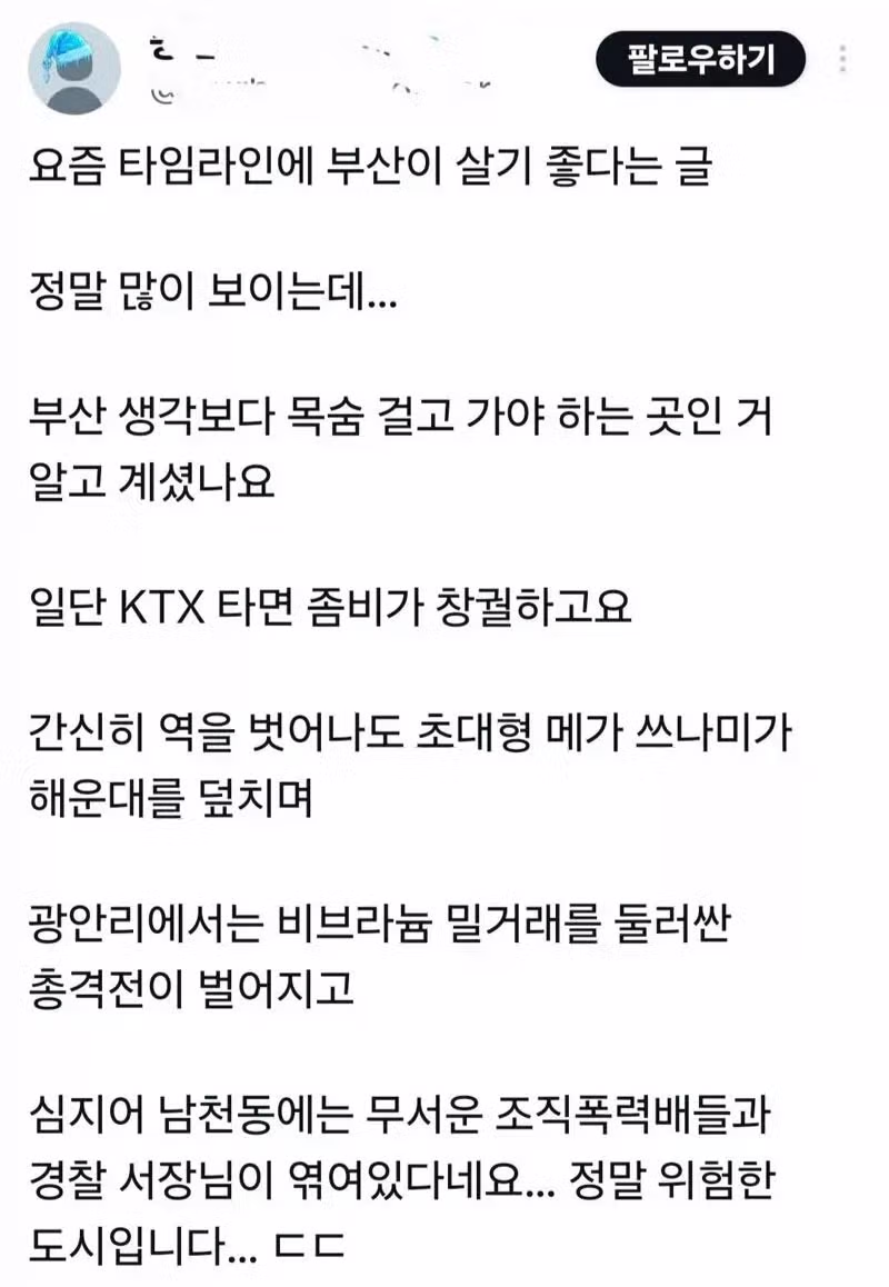 좀비는 오히려 부산에 와야 되는거 아니여? 진지 진지