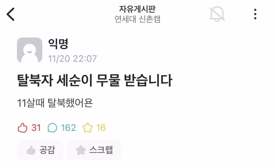 ㅋㅋㅋ 말하는거 그냥 남한 청춘인뎅 기엽다