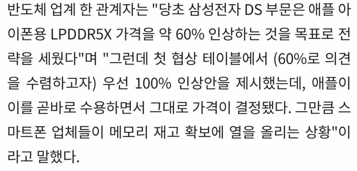애플이 삼성램을 100% 인상된 가격에 사게 된 이유