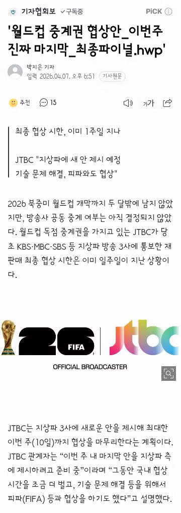 지상파 3사..120억원이면 월드컵 중계...JTBC에 전달.