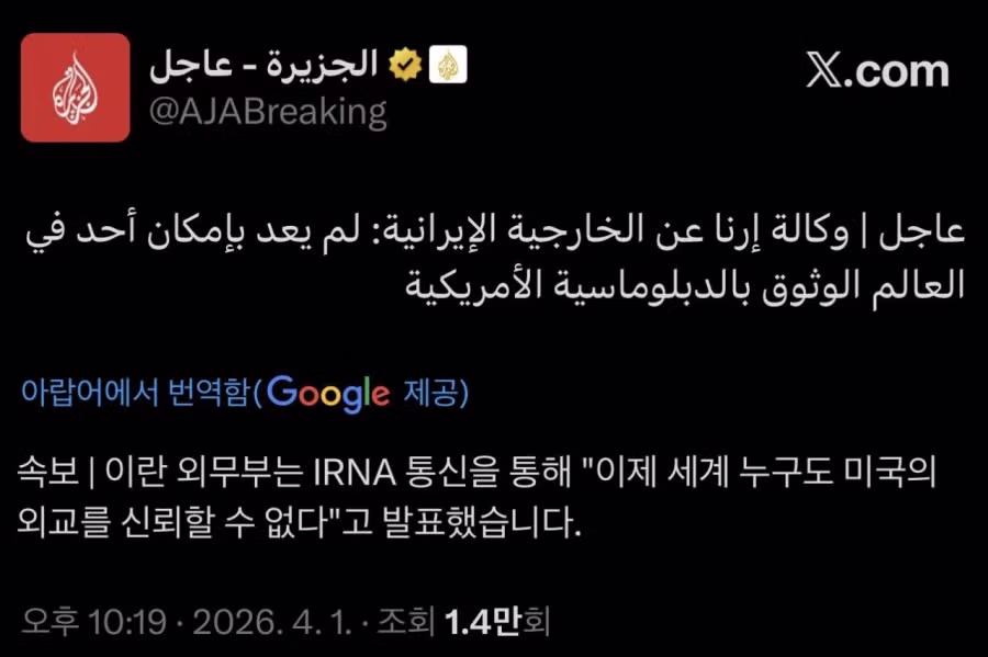 속보) 이란 "이제 세계 누구도 미국의 외교를 신뢰할 수 없다"