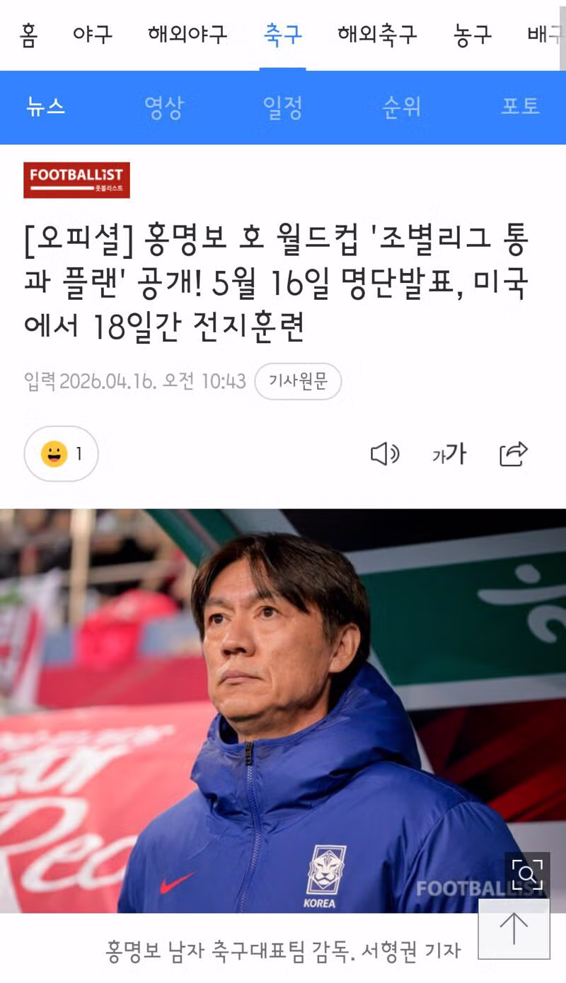 명보나 정회장이 살 길은 16강이상의 성적을 내야하는건데 사실상 현지 예선전인 조별리그라도 통과할 지 모르겠네요. 근데 공중파는 정말 방송 안한데요?