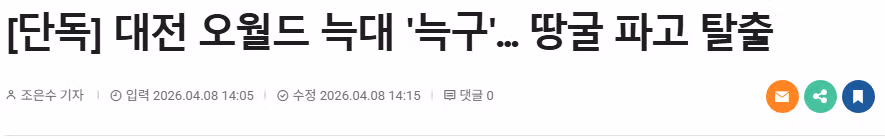 [단독] 대전 오월드 늑대 '늑구'... 땅굴 파고 탈출