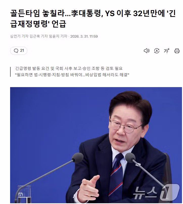 이재명, 긴급재정명령 언급 ㄷㄷㄷ