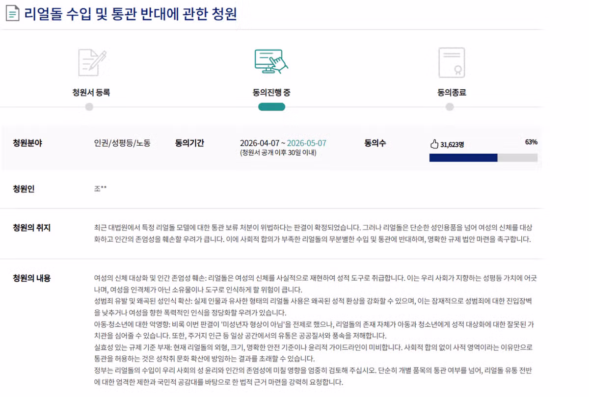 이게 머선 개소리고...? 왜 리얼돌 규제를 청원 넣는거?