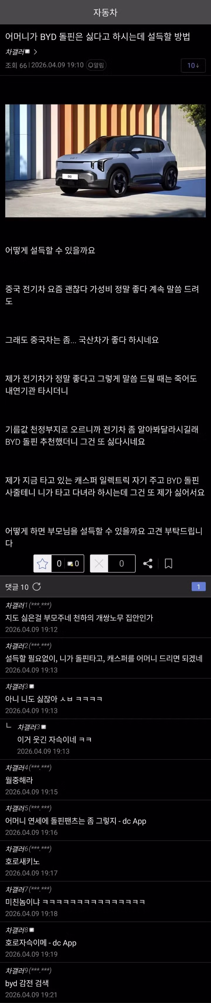 아니 byd차가 좋은지 나쁜지는 둘째치고 본인이 싫다는데 왜 설득을 해 ㅋㅋㅋ 그렇게 좋으면 본인이 타고 캐스퍼 달라는데 그건 또 싫다는건 무슨 심보고. 뭐 이런 개호로새끼가