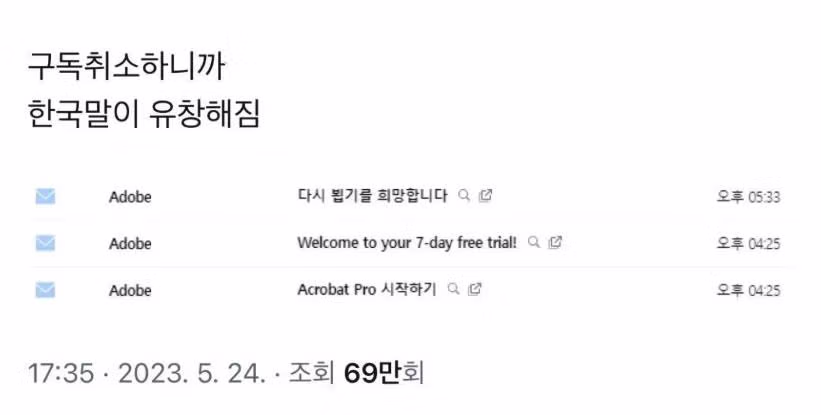 구독 해지하니 갑자기 한국말이 유창해짐