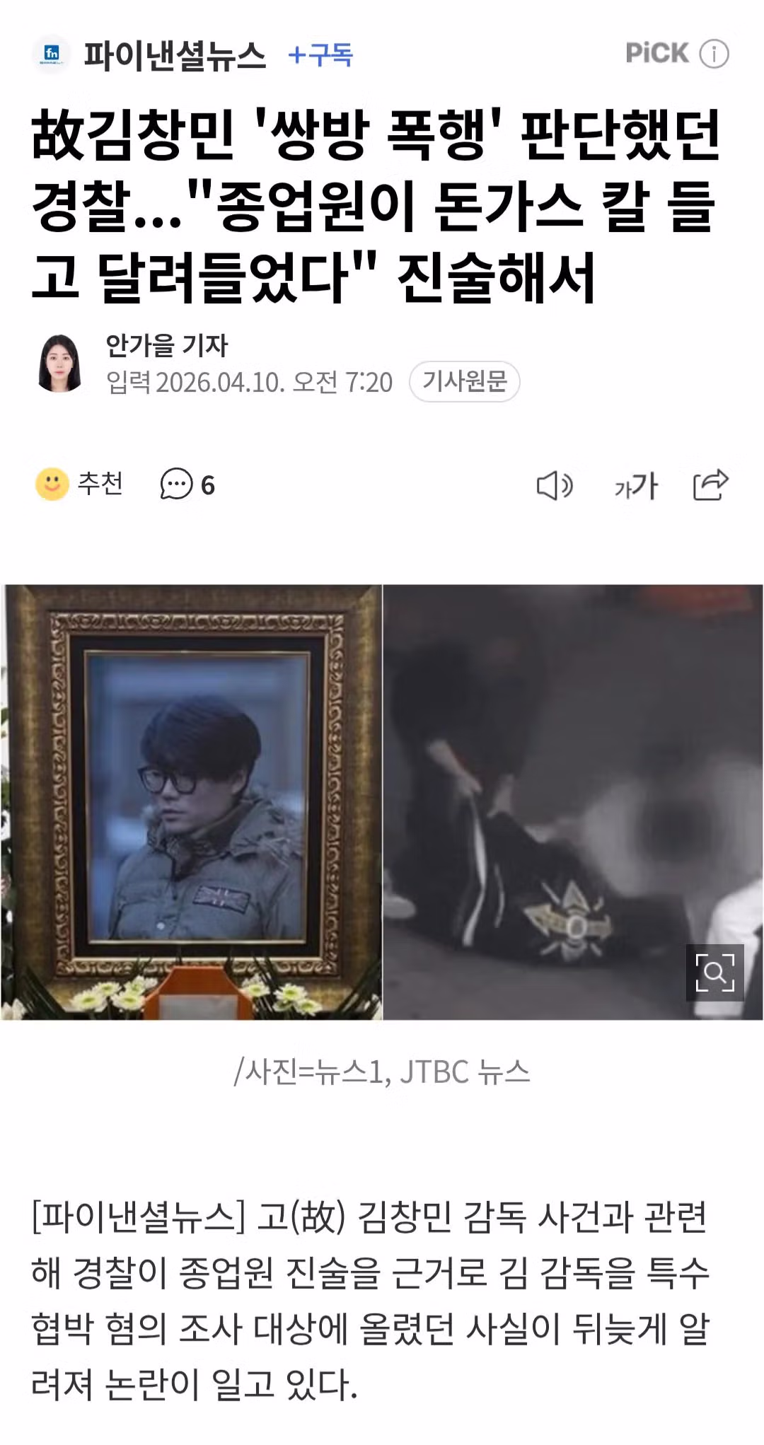 故김창민 '쌍방 폭행' 판단했던 경찰..."종업원이 돈가스 칼 들고 달려들었다" 진술해서