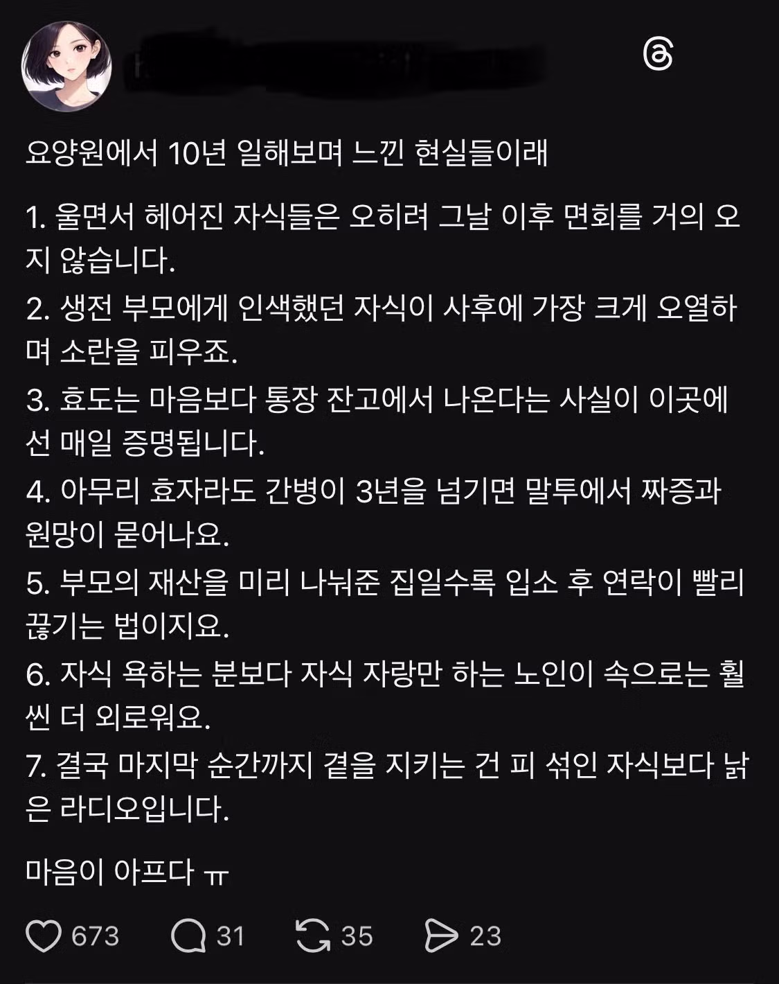 요양원 10년 일하면서 느낀 점..