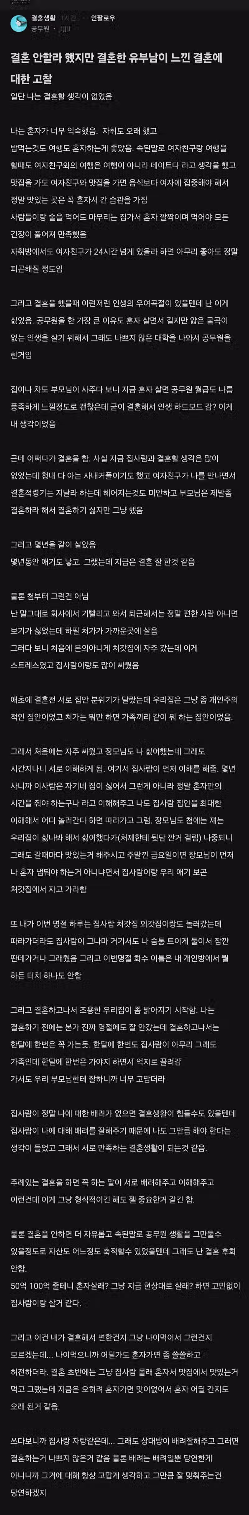 혼자살려다 결혼한 유부남이 느낀 결혼