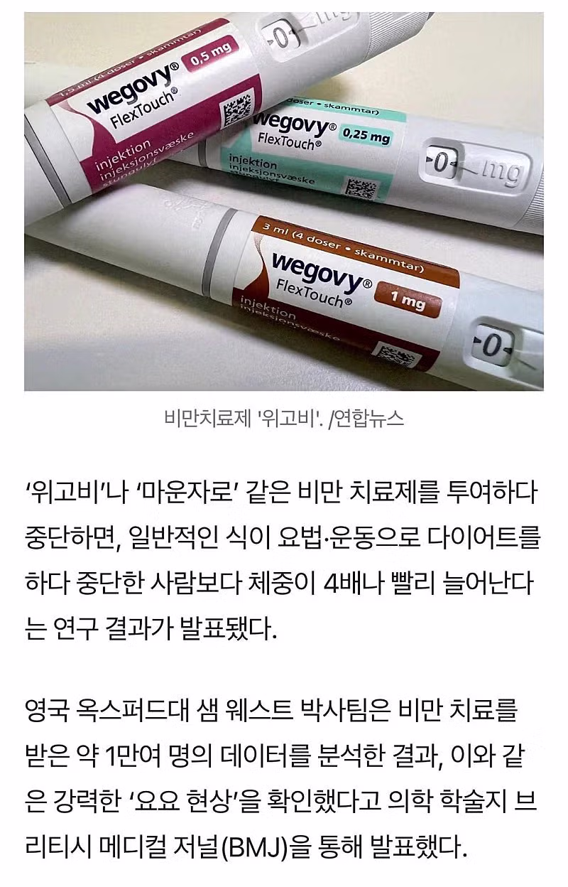 위고비, 마운자로 중단 시 요요 속도가 4배 빠른 이유 ㄷㄷㄷㄷㄷㄷ
