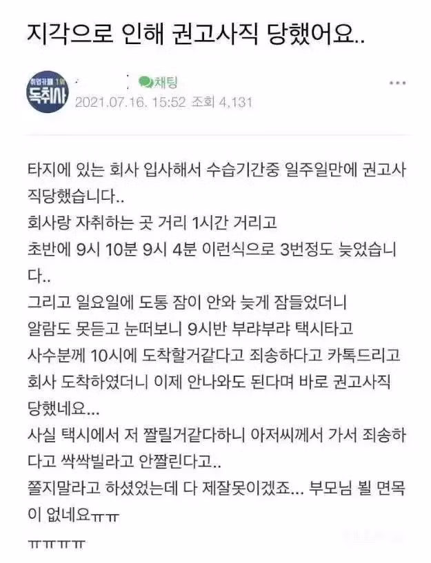 일주일에 5일 출근하는데 세번 지각이면 해도 해도 너무한거 아니냐??