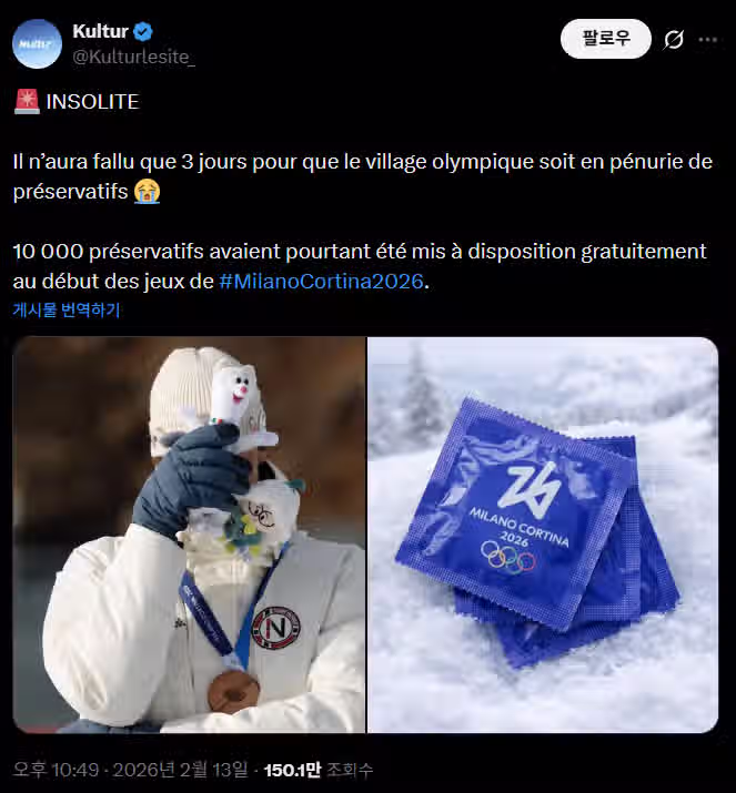 동계 올림픽 개막 3일만에 콘돔 전량 소진