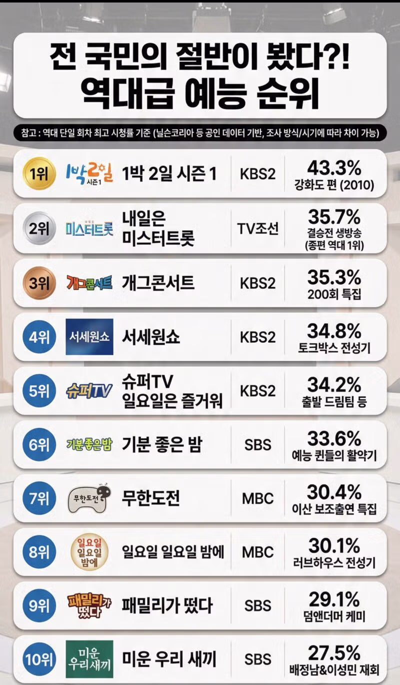 역대 예능 시청률 순위