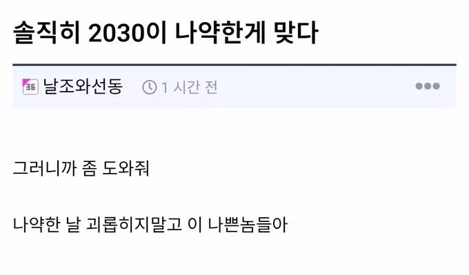 솔직히 2030이 나약한게 맞다